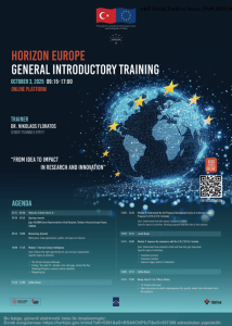 Avrupa Birliği ve Türkiye Cumhuriyeti tarafından ortak finanse edilen, T.C. Sanayi ve Teknoloji Bakanlığı tarafından yürütülen, nihai yararlanıcılığını TÜBİTAK’ın üstlendiği ve Rekabetçi Sektörler Programı kapsamında desteklenen “Ufuk Avrupa’da Türkiye” Teknik Destek Projesi çerçevesinde, 3 Ekim 2025 tarihinde çevrim içi olarak “Ufuk Avrupa Genel Bilgilendirme Eğitimi” düzenlenecektir.