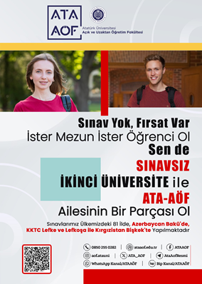 Atatürk Üniversitesi Açık ve Uzaktan Öğretim Fakültesi (ATA-AÖF), eğitimde fırsat eşitliğini temel alarak, yükseköğretimi toplumun her kesimi için erişilebilir kılmayı hedeflemekte; her yaştan bireyin yaşam boyu öğrenme sürecine katılımını destekleyen çağdaş, esnek, zaman ve mekândan bağımsız bir öğrenme ortamı sunmaktadır. ATA-AÖF, Türkiye’deki tüm üniversite öğrencilerine ve mezunlarına herhangi bir sınav koşulu olmadan farklı bir alanda eğitim fırsatı tanımaktadır. Sınavsız İkinci Üniversite başvuruları 17 Ekim 2025 tarihine kadar devam edecektir.