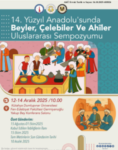 Kütahya Dumlupınar Üniversitesi ve Selçuk Üniversitesi iş birliği ile 12-14 Aralık 2025 tarihleri arasında Fen Edebiyat Fakültesi Germiyanoğlu Yakup Bey Konferans Salonu’nda ”14. Yüzyıl Anadolusu’nda Beyler, Çelebiler ve Ahiler Uluslararası Sempozyumu” düzenlenecektir.