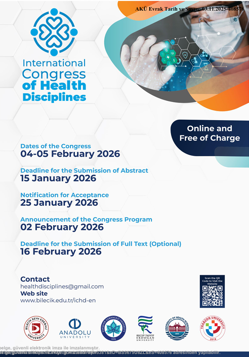 Bilecik Şeyh Edebali Üniversitesi tarafından 4-5 Şubat 2026 tarihleri arasında çevrim içi ve ücretsiz olarak “International Congress of Health Disciplines” gerçekleştirilmesi planlanmaktadır. Planlanan kongre Üniversitelerarası Kurul (ÜAK) Doçentlik Kriterlerini karşılayacaktır.