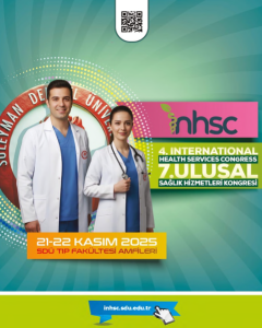 Süleyman Demirel Üniversitesi Tıp Fakültesi ev sahipliğinde, 21-22 Kasım 2025 tarihleri arasında düzenlenecek olan “4. Uluslararası / 7. Ulusal Sağlık Hizmetleri Kongresi (INHSC2025)” hibrit (yüz yüze ve çevrimiçi) olarak Fakülte Dersliklerinde gerçekleştirilecektir.