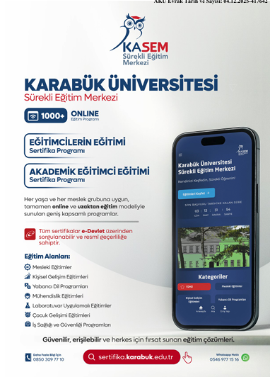 Karabük Üniversitesi Sürekli Eğitim, Uygulama ve Araştırma Merkezi (KASEM) olarak; toplumun farklı kesimlerine yönelik yaşam boyu öğrenme yaklaşımı doğrultusunda, nitelikli insan gücünün yetiştirilmesine katkı sağlamak ve görev başındaki personelin mesleki, kişisel ve akademik gelişimini desteklemek amacıyla çeşitli eğitim ve sertifika programları yürütmektedir.
