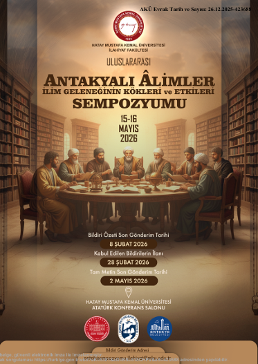 Hatay Mustafa Kemal Üniversitesi İlahiyat Fakültesi tarafından 15–16 Mayıs 2026 tarihlerinde “Uluslararası Antakyalı Âlimler: İlim Geleneğinin Kökleri ve Etkileri Sempozyumu” kapsamında gerçekleştirilecektir.