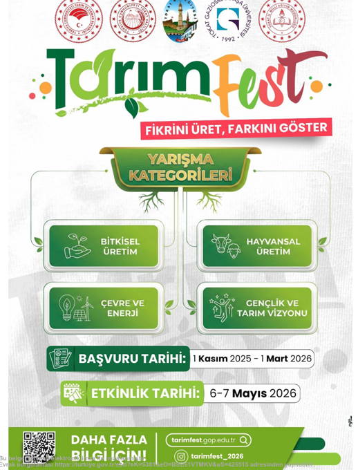 Detaylı bilgiye https://tarimfest.gop.edu.tr/ web adresinden ulaşılabilmektedir.