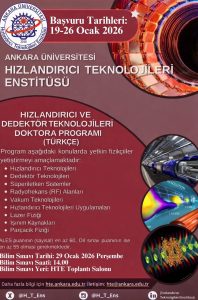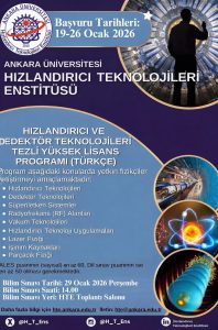 Ankara Üniversitesi Hızlandırıcı Teknolojileri Enstitüsü Müdürlüğü tarafından 2025-2026 Eğitim-Öğretim yılı bahar yarıyılı lisansüstü öğrenci alımı yapılacaktır.