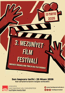 Ankara Hacı Bayram Veli Üniversitesi İletişim Fakültesi tarafından “Mezuniyet Film Festivali”nin ve “Üniversite Öğrencilerine Yönelik Kısa Film Yarışması”nın bu yıl üçüncüsü düzenlenecektir.