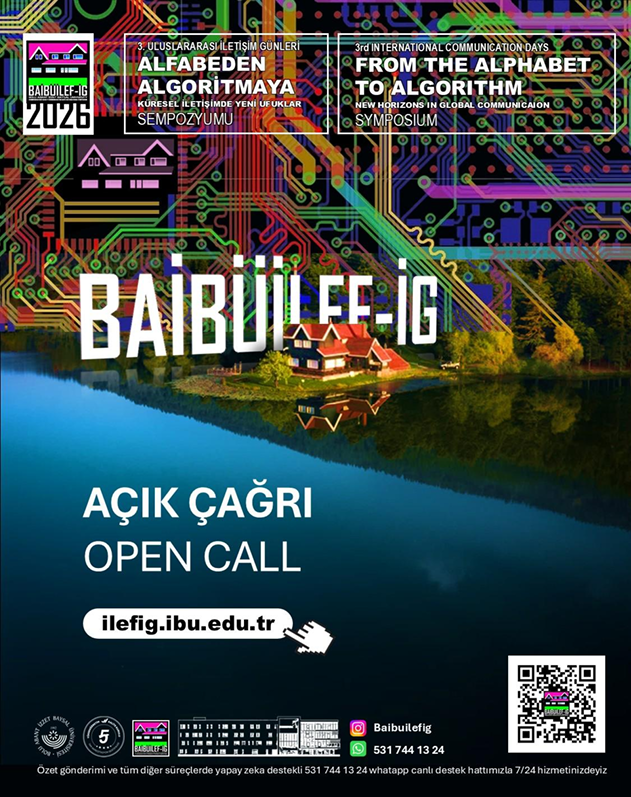 Bolu Abant İzzet Baysal Üniversitesi İletişim Fakültesi tarafından, 13-15 Mayıs 2026 tarihleri arasında kurumsal bir akademik gelenek haline gelen “BAİBÜİLEF-İG Uluslararası İletişim Günleri” sempozyumu düzenleneceği bildirilmiştir. TÜBİTAK 2223-B Yurt İçi Bilimsel Etkinlik Düzenleme Desteğine başvurusu yapılmış olan sempozyumunun, “Alfabeden Algoritmaya:Küresel İletişimde Yeni Ufuklar” temasıyla gerçekleştirilecektir. Yaklaşık 150 bilim insanını bir araya getirmesi planlanan etkinlik kapsamında hakemli bildiri süreçleri yürütülmekte olup etkinlik sonunda Bildiri Özetleri Kitabı ve Tam Metin Bildiriler Kitabı yayımlanacaktır.