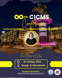Aydın Adnan Menderes Üniversitesi İletişim Fakültesi tarafından 20-22 Mayıs 2026 tarihleri arasında, “8. Kültürel Bilişim, İletişim ve Medya Çalışmaları (Cultural Informatics, Communication&Media Studies Confenece- CICMS)” Konferansı’nın yapılması planlanmaktadır.