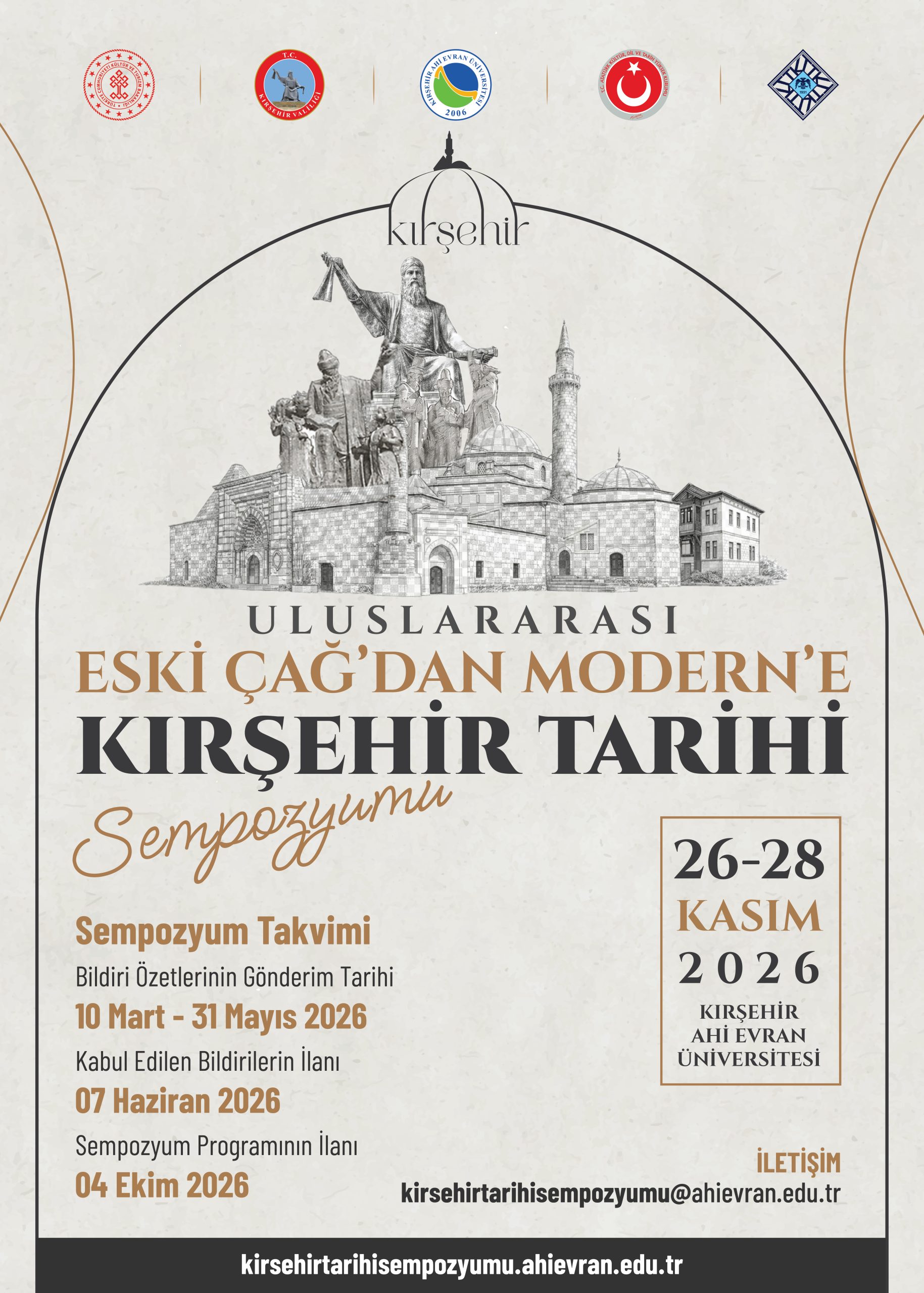 Kırşehir Ahi Evran Üniversitesi 20. kuruluş yıldönümü kapsamında Türk Tarih Kurumu’nun destekleriyle 26-28 Kasım 2026 tarihlerinde “Uluslararası Eski Çağ’dan Modern’e Kırşehir Tarihi Sempozyumu” düzenlenecektir.