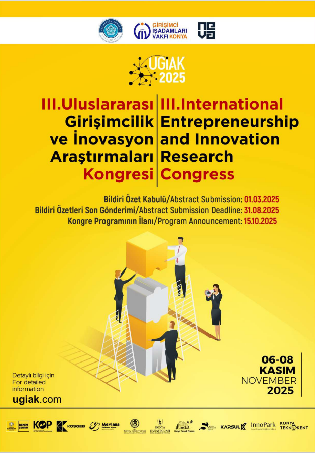 Necmettin Erbakan Üniversitesi, Girişimci İşadamları Vakfı (GİV) ve Necmettin Erbakan Üniversitesi Geliştirme Vakfı (NEVA) iş birliği ile Siyasal Bilgiler Fakültesi ev sahipliğinde 15-17 Ekim 2026 tarihleri arasında “III. Uluslararası Girişimcilik ve İnovasyon Araştırmaları Kongresi (UGİAK 2026)” düzenlenecektir.
