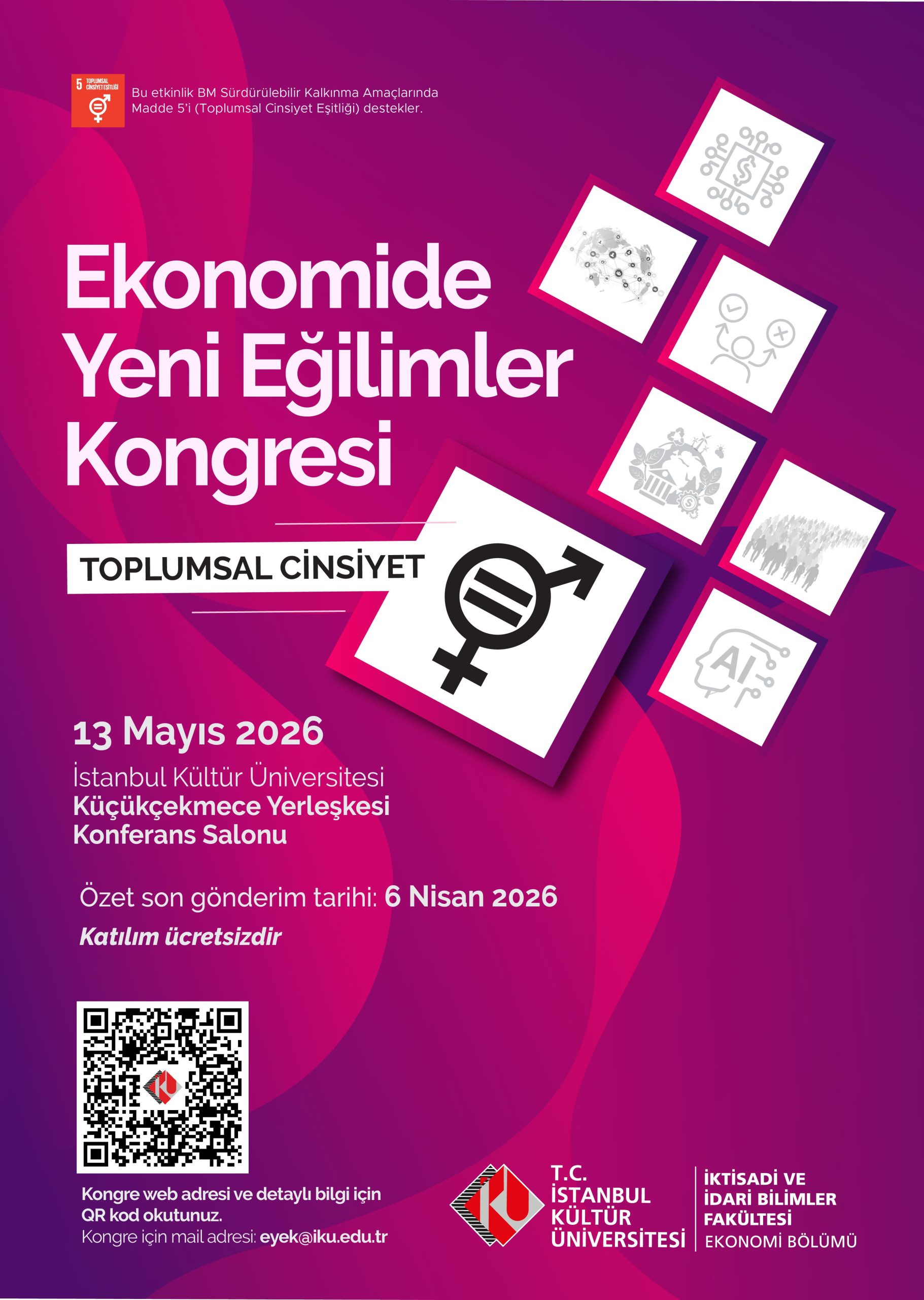 İstanbul Kültür Üniversitesi İktisadi ve İdari Bilimler Fakültesi Ekonomi Bölümü tarafından çevrim içi olarak düzenlenecek olan “Ekonomide Yeni Eğilimler Kongresi” 13 Mayıs 2026 tarihinde gerçekleştirilecektir.