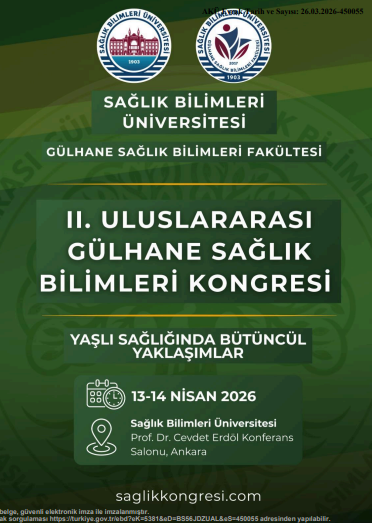 Sağlık Bilimleri Üniversitesi Gülhane Sağlık Bilimleri Fakültesi tarafından 13-14 Nisan 2026 tarihinde “Yaşlı Sağlığında Bütüncül Yaklaşımlar” temalı II. Uluslararası Gülhane Sağlık Bilimleri Kongresi düzenlenecektir.