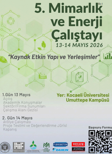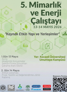 Kocaeli Üniversitesi Mimarlık ve Tasarım Fakültesi Mimarlık Bölümü ev sahipliğinde, Balıkesir Üniversitesi Mimarlık Bölümü tarafından başlatılan ve her yıl farklı üniversiteler ile iş birliği içerisinde düzenlenen “Mimarlık ve Enerji Çalıştayı”nın beşincisi, 13–14 Mayıs 2026 tarihlerinde Kocaeli Üniversitesi Umuttepe Yerleşkesi Prof. Dr. Baki Komsuoğlu Kültür ve Kongre Merkezi’nde gerçekleştirilecektir.