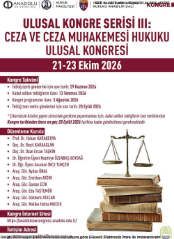 Çağrıya Anadolu Universitesi Hukuk Fakultesi Ulusal Kongre Serisi III_ Ceza ve Ceza Muhakemesi Hukuku Ulusal Kongresi bağlantısından ulaşılabilmektedir.