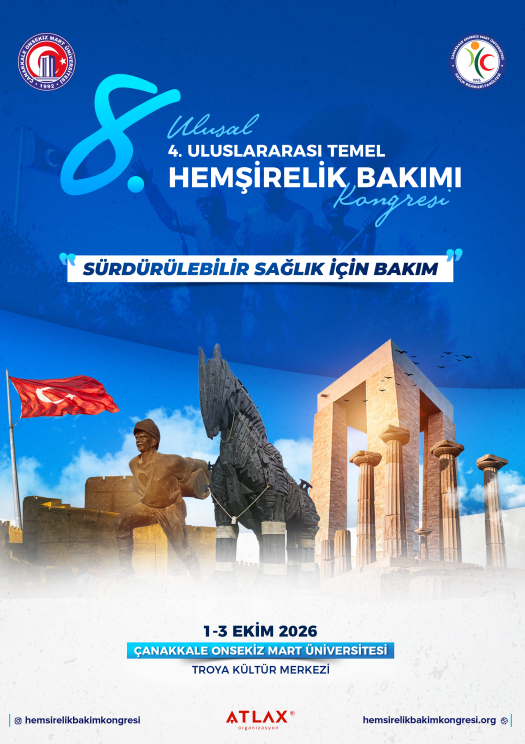 Çanakkale Onsekiz Mart Üniversitesi Sağlık Bilimleri Fakültesi Hemşirelik Bölümü ve Hemşirelik Esasları Anabilim Dalı ev sahipliğinde 01-03 Ekim 2026 tarihleri arasında Çanakkale Onsekiz Mart Üniversitesi Troya Kültür Merkezi Sevim Buluç Oditoryum Salonunda gerçekleştirilecek olan “4. Uluslararası 8. Ulusal Temel Hemşirelik Bakım Kongresi” nin (Bu yılki teması ana teması “Sürdürülebilir Sağlık için Bakım” olarak belirlenmiştir.